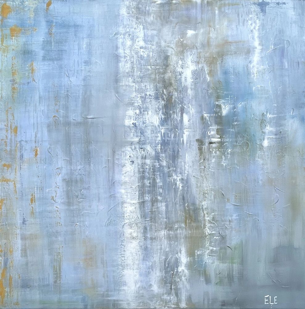 Today, ELE creates holistic, ethereal abstractions that serve as spaces of calm and reflection. Guided entirely by intuition, she approaches each canvas as a vessel, transferring her emotions and her ongoing pursuit of tranquility into color, movement, and depth. Her work is rooted in nature and natural tones, which she considers essential to honesty, purity, and human connection.
